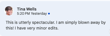 You can jump right in or sit with it for a few days, but after the doc is in your hand, I’m available for unlimited edits until you take it live when I have a fresh morning brain. (But usually, my clients only need 1-2 rounds.)